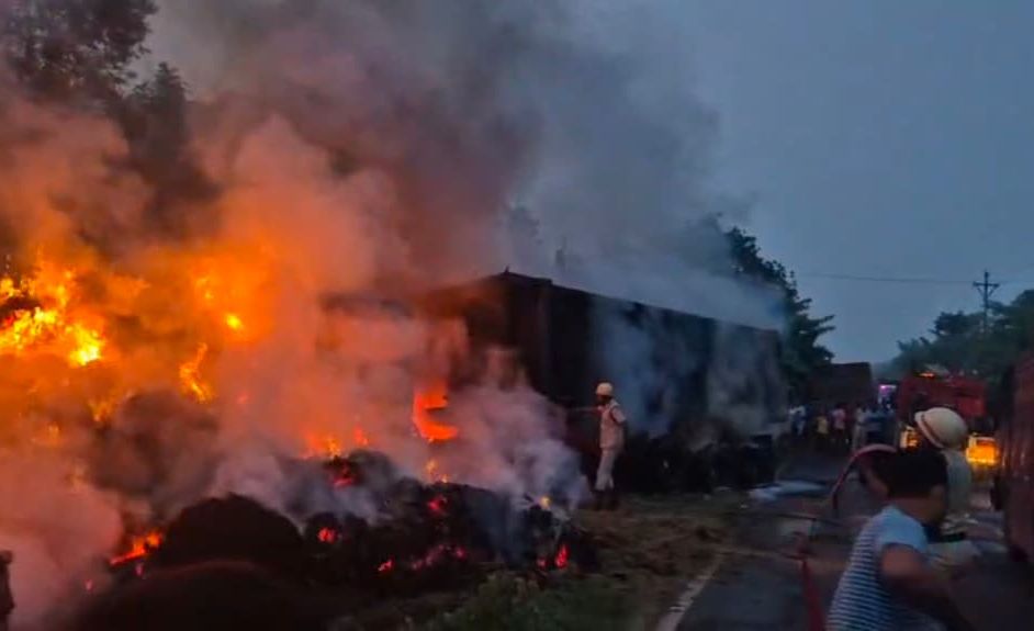 বিপ্লবী সব্যসাচী পত্রিকা অনলাইন : রবিবার ভোররাতে সবং থানার অন্তর্গত নীলা বাজার এলাকায় ঘটে গেল ভয়াবহ এক দুর্ঘটনা। দুটি ভারী গাড়ির মুখোমুখি সংঘর্ষের জেরে মুহূর্তের মধ্যে দাউদাউ করে জ্বলে উঠলো আগুন। আগুনের তাপে রাস্তার ধারে থাকা আরও কয়েকটি গাড়িও ক্ষতিগ্রস্ত হয়। স্থানীয় সূত্রে জানা গেছে, ভোর চারটা নাগাদ পটাশপুর থেকে তেমাথানির দিকে আসা একটি কন্টেইনার ট্রাক এবং রাস্তার পাশে দাঁড়িয়ে থাকা মোরাম বোঝাই একটি ডাম্পার-এর মধ্যে মুখোমুখি সংঘর্ষ ঘটে। সংঘর্ষের পর কন্টেইনারটিতে মুহূর্তের মধ্যে আগুন ধরে যায়।