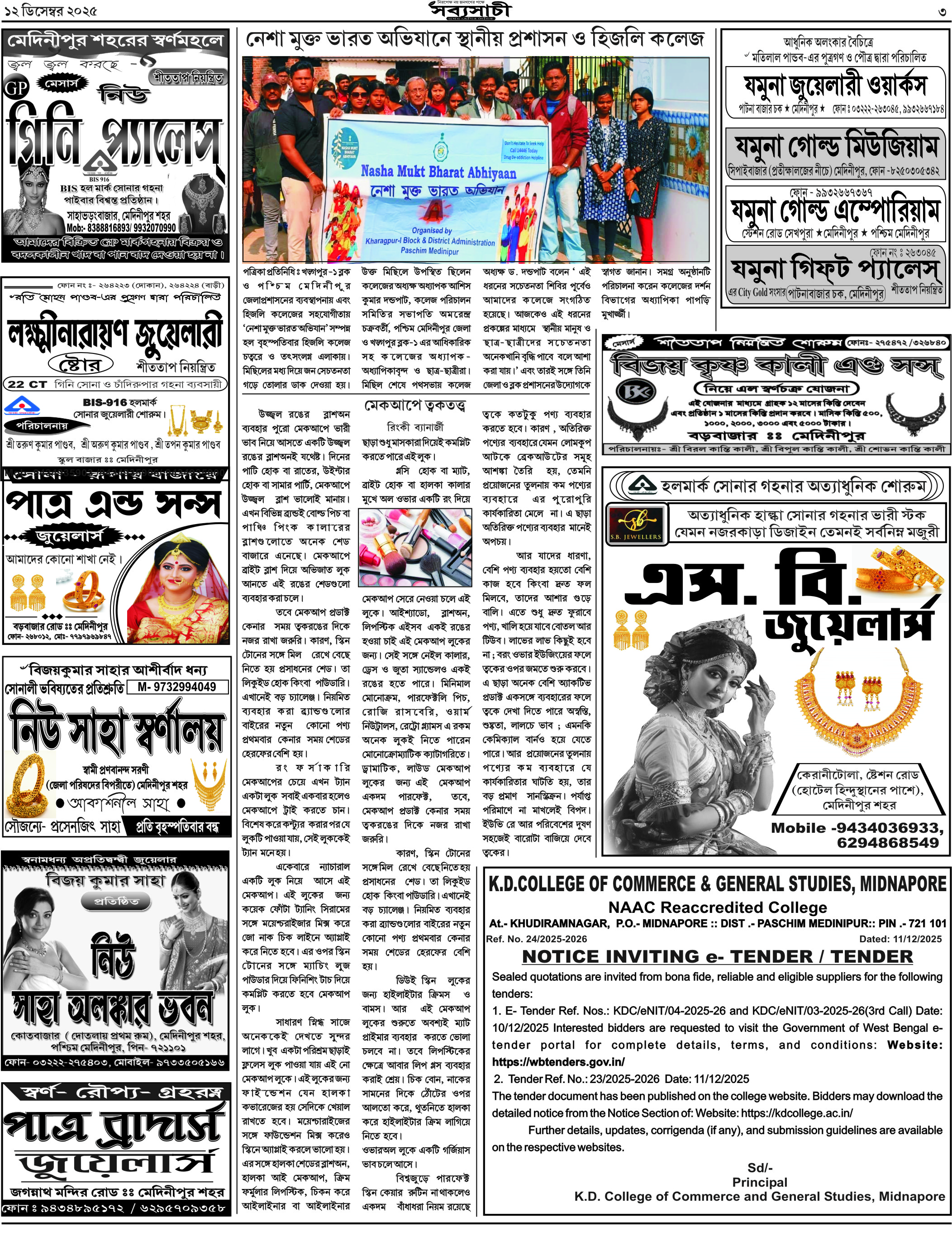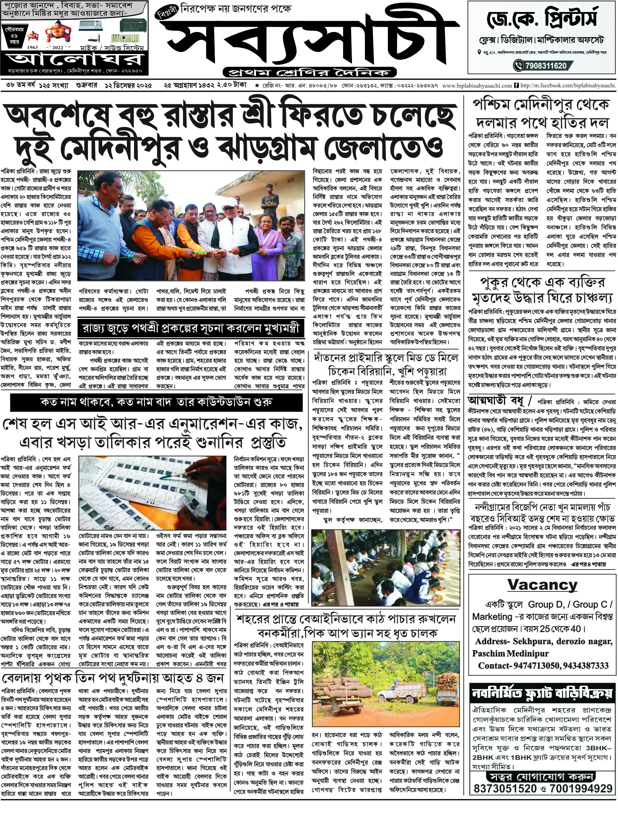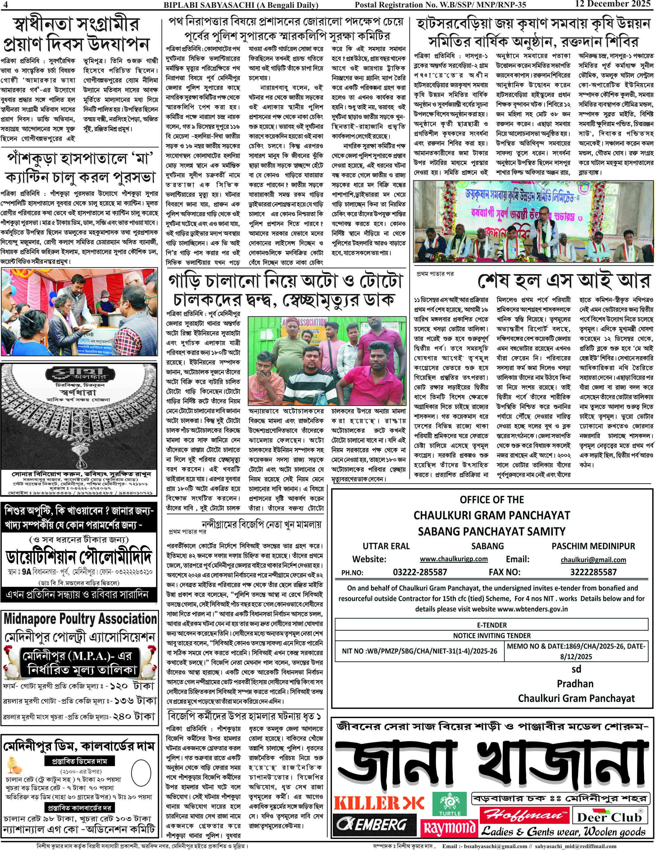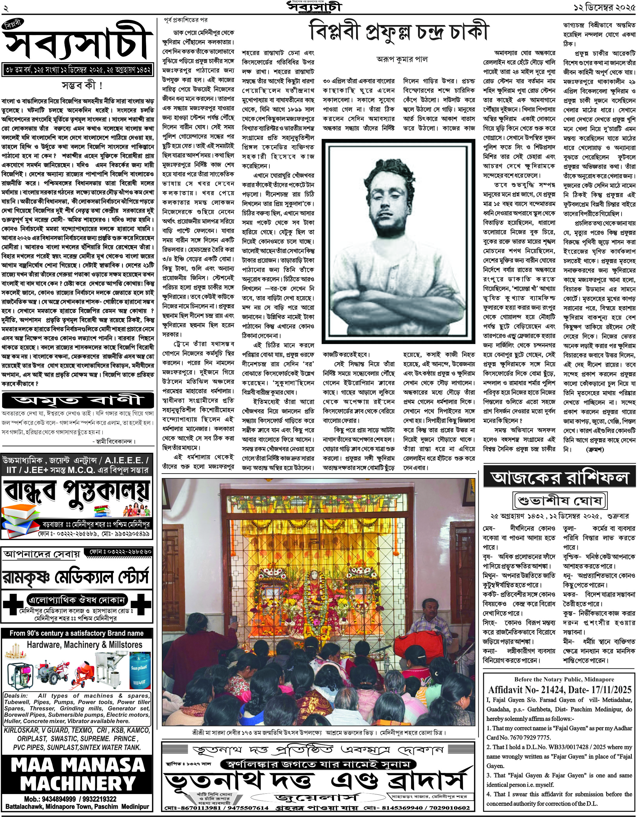 আজকের পত্রিকা – ১২ ডিসেম্বর ২০২৫, বাঃ – ২৫অগ্রহায়ণ ১৪৩২