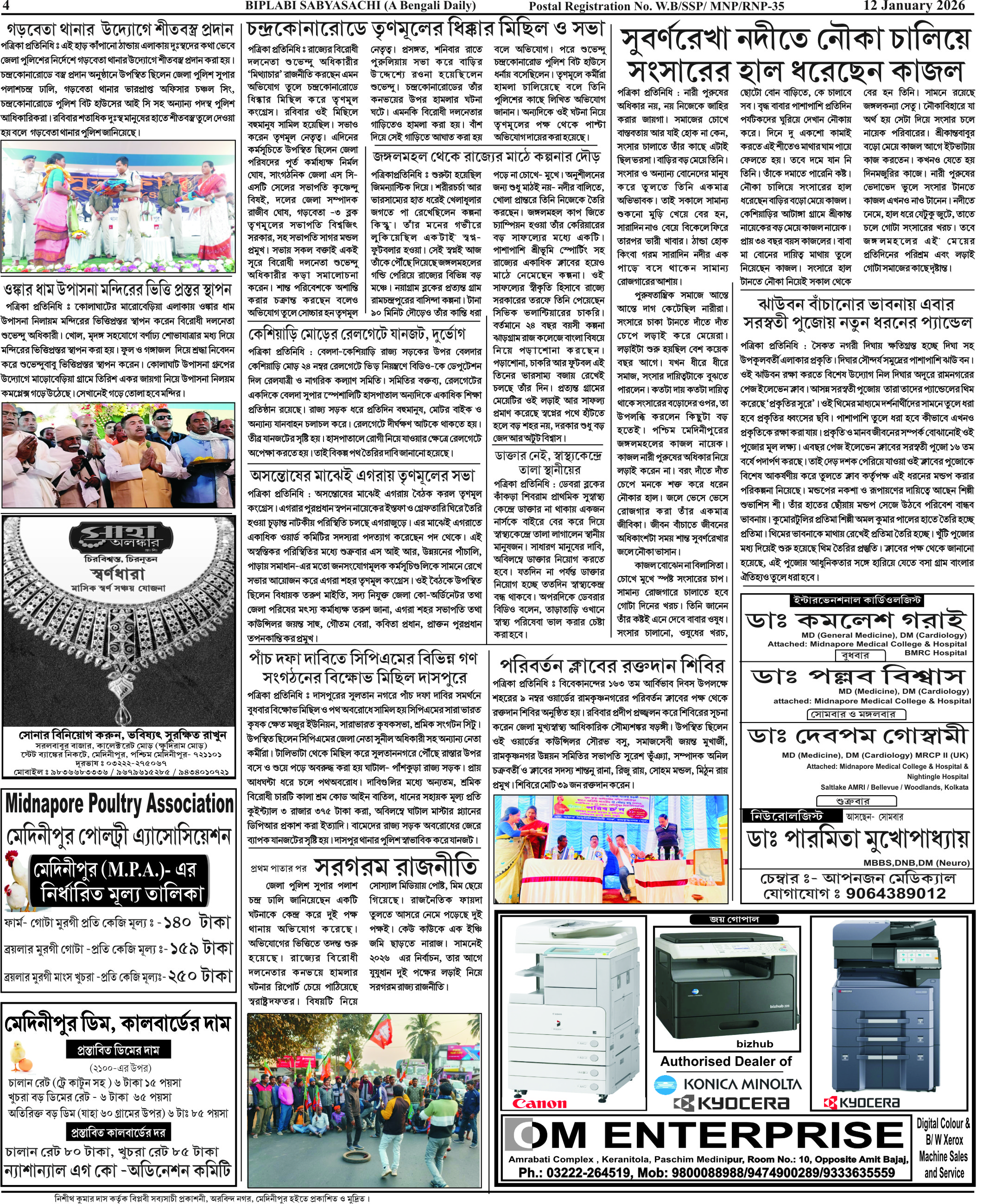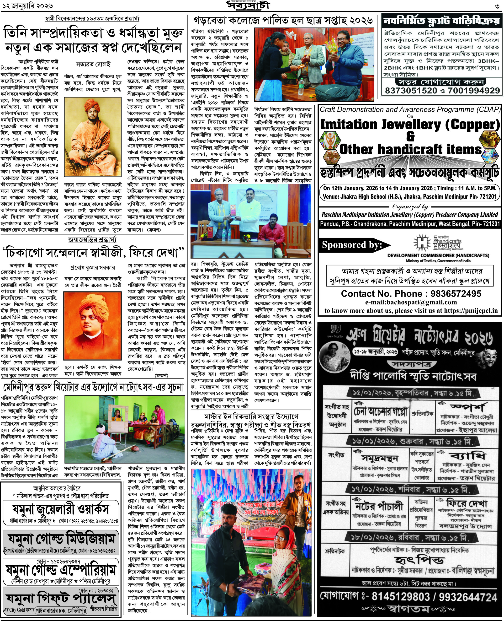 আজকের পত্রিকা – ১২ জানুযারি ২০২৬, বাঃ – ২৭পৌষ ১৪৩২