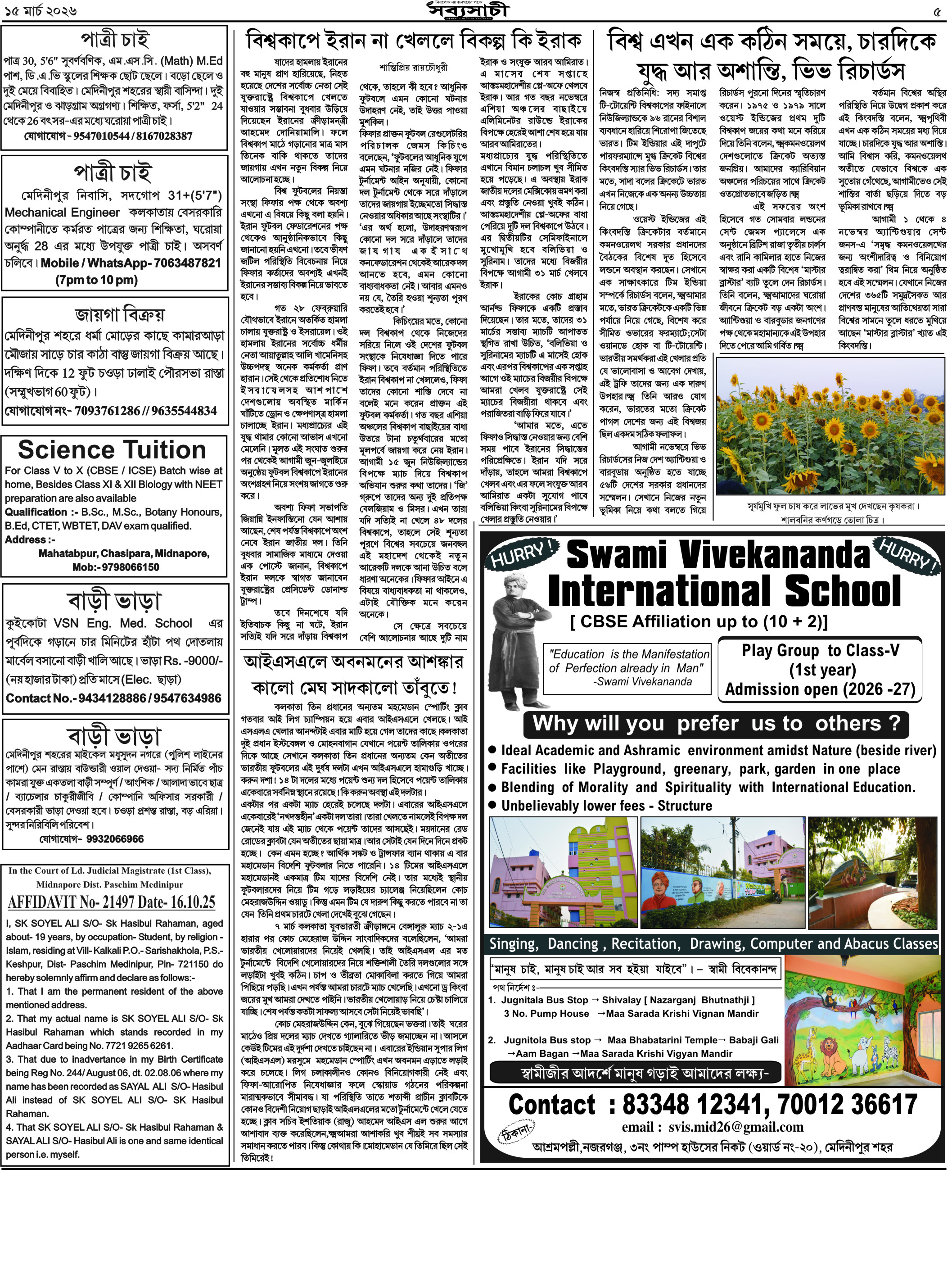Biplabi Sabyasachi Largest Bengali News paper