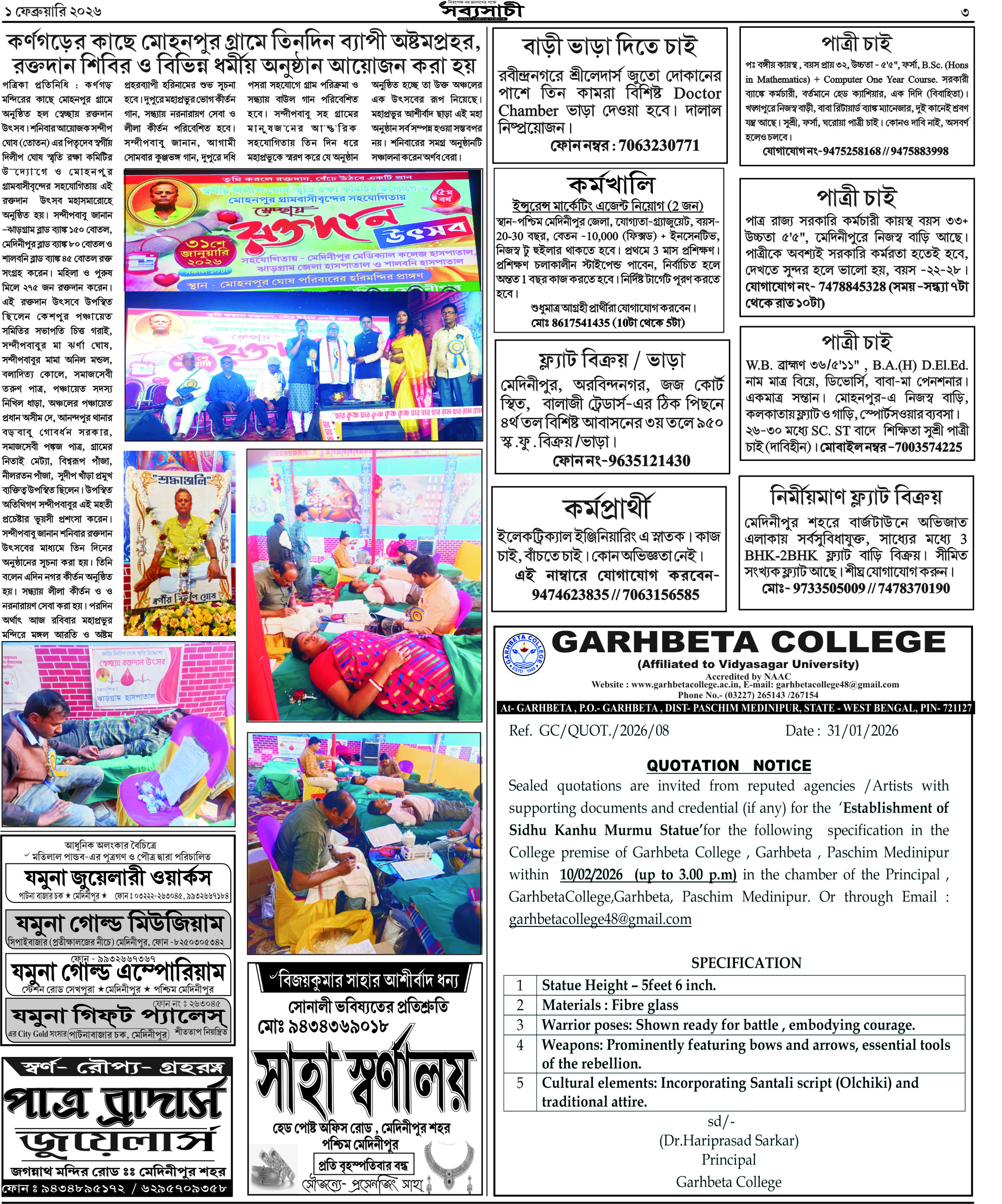 Biplabi Sabyasachi Largest Bengali News paper