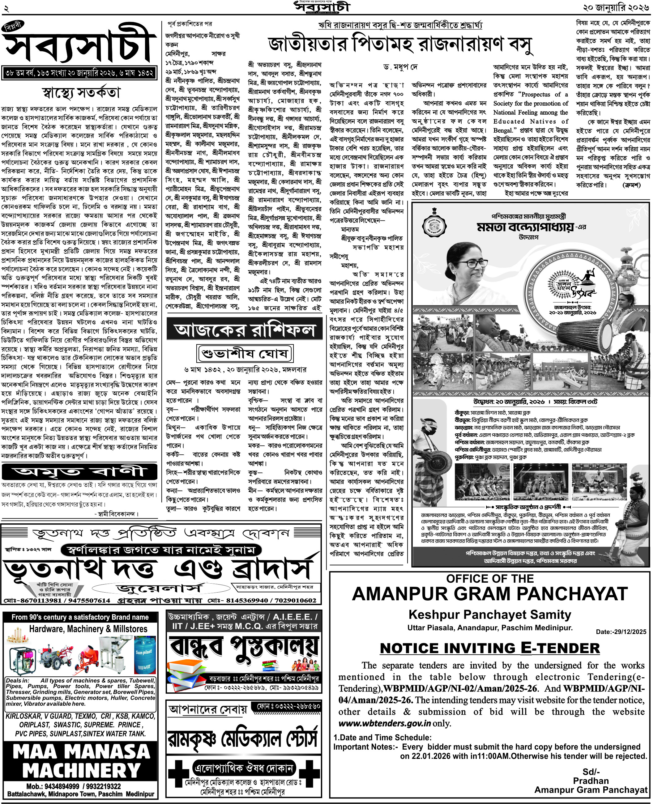 আজকের পত্রিকা – ২০জানুযারি ২০২৬, বাঃ – ৬মাঘ ১৪৩২