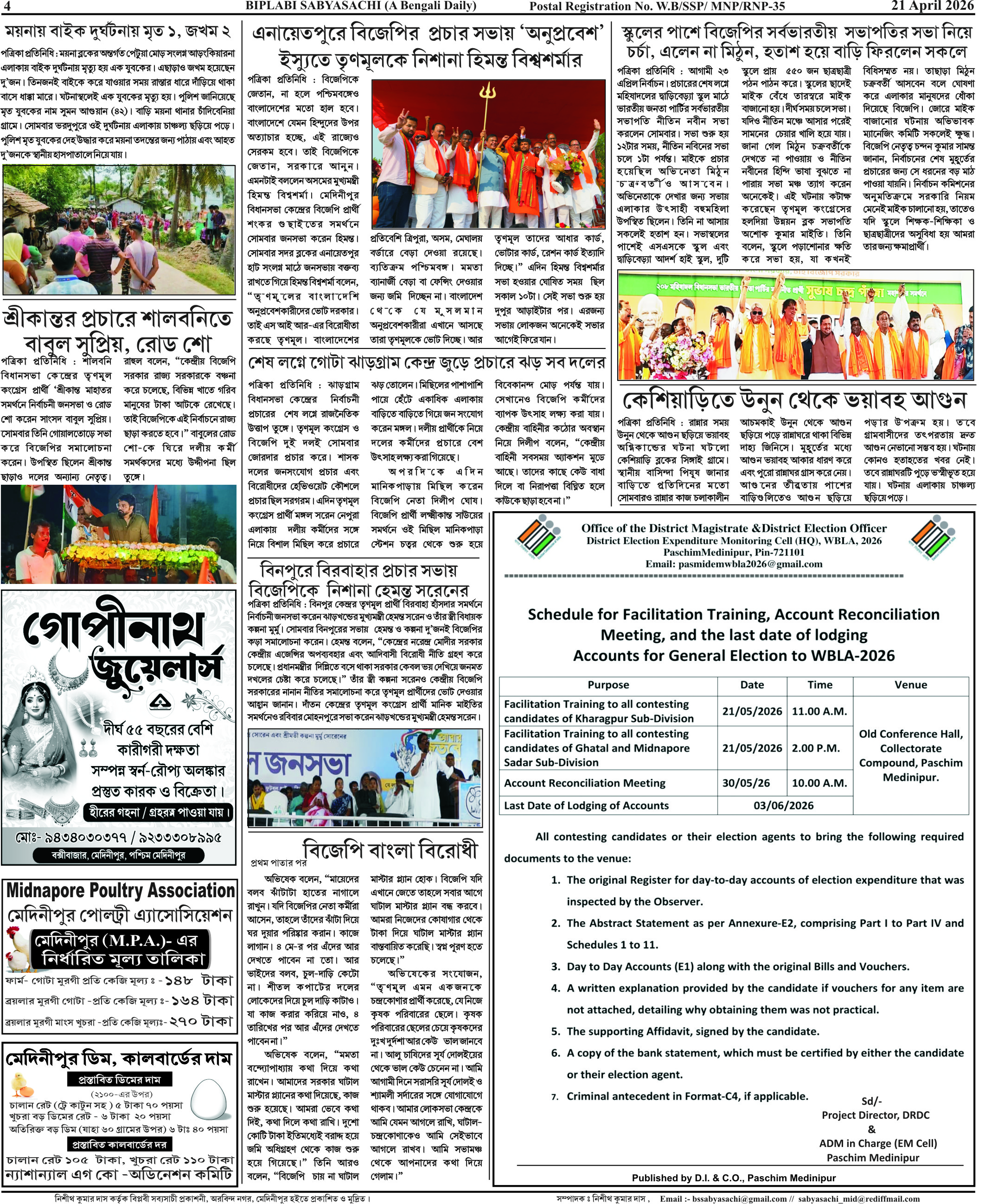 আজকের পত্রিকা – ২১এপ্রিল ২০২৬, বাঃ – ৭বৈশাখ ১৪৩২