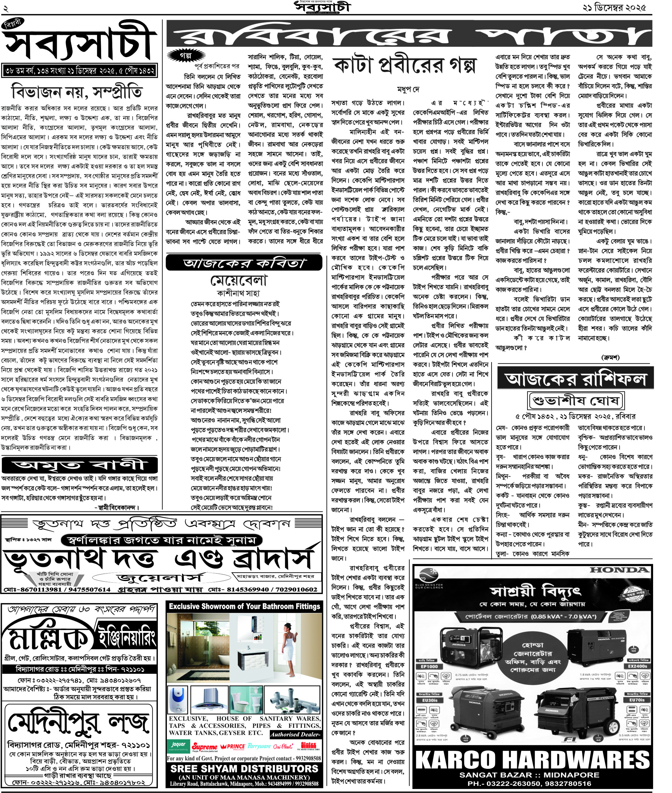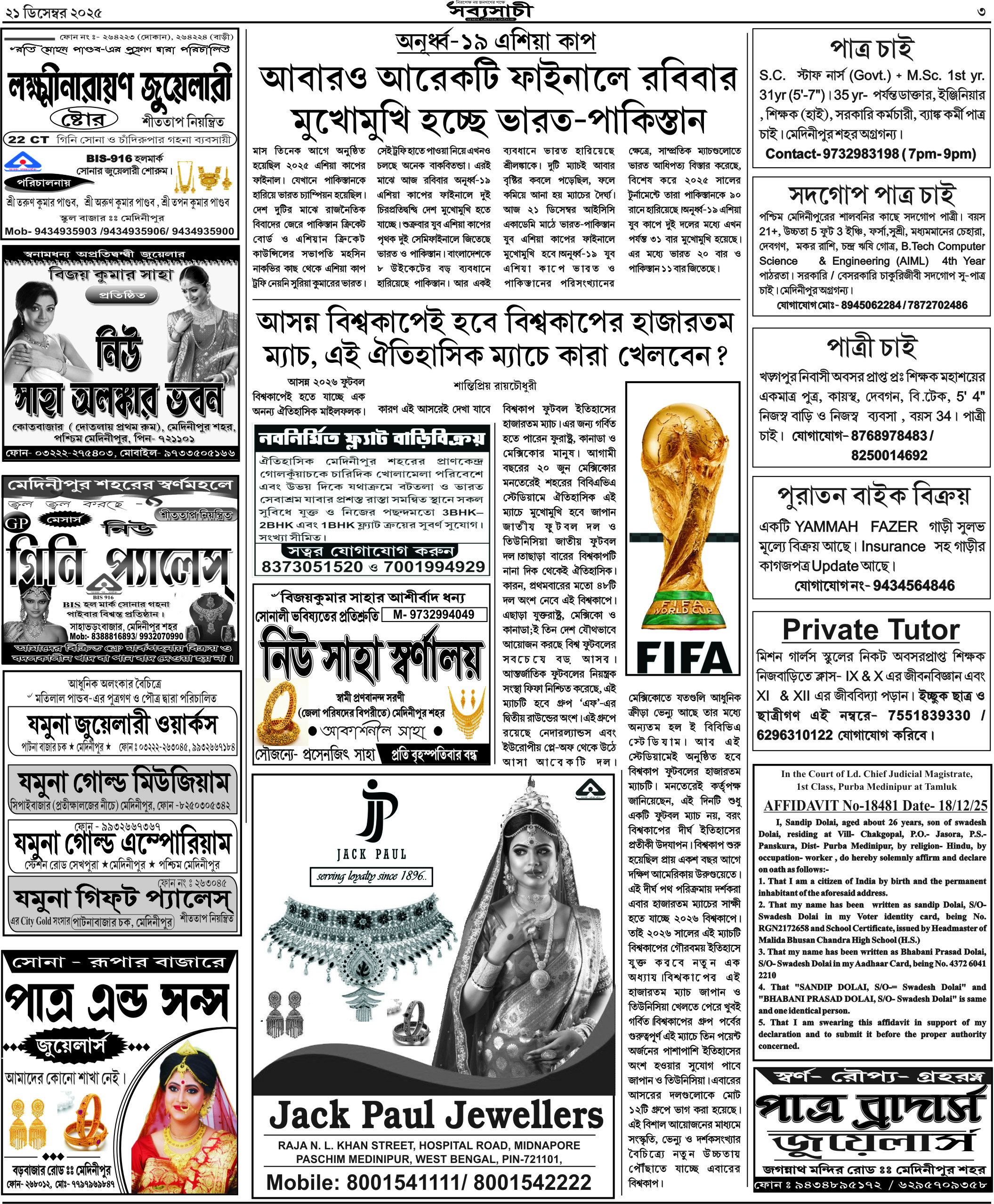 আজকের পত্রিকা – ২১ ডিসেম্বর ২০২৫, বাঃ – ৫ পৌষ ১৪৩২
