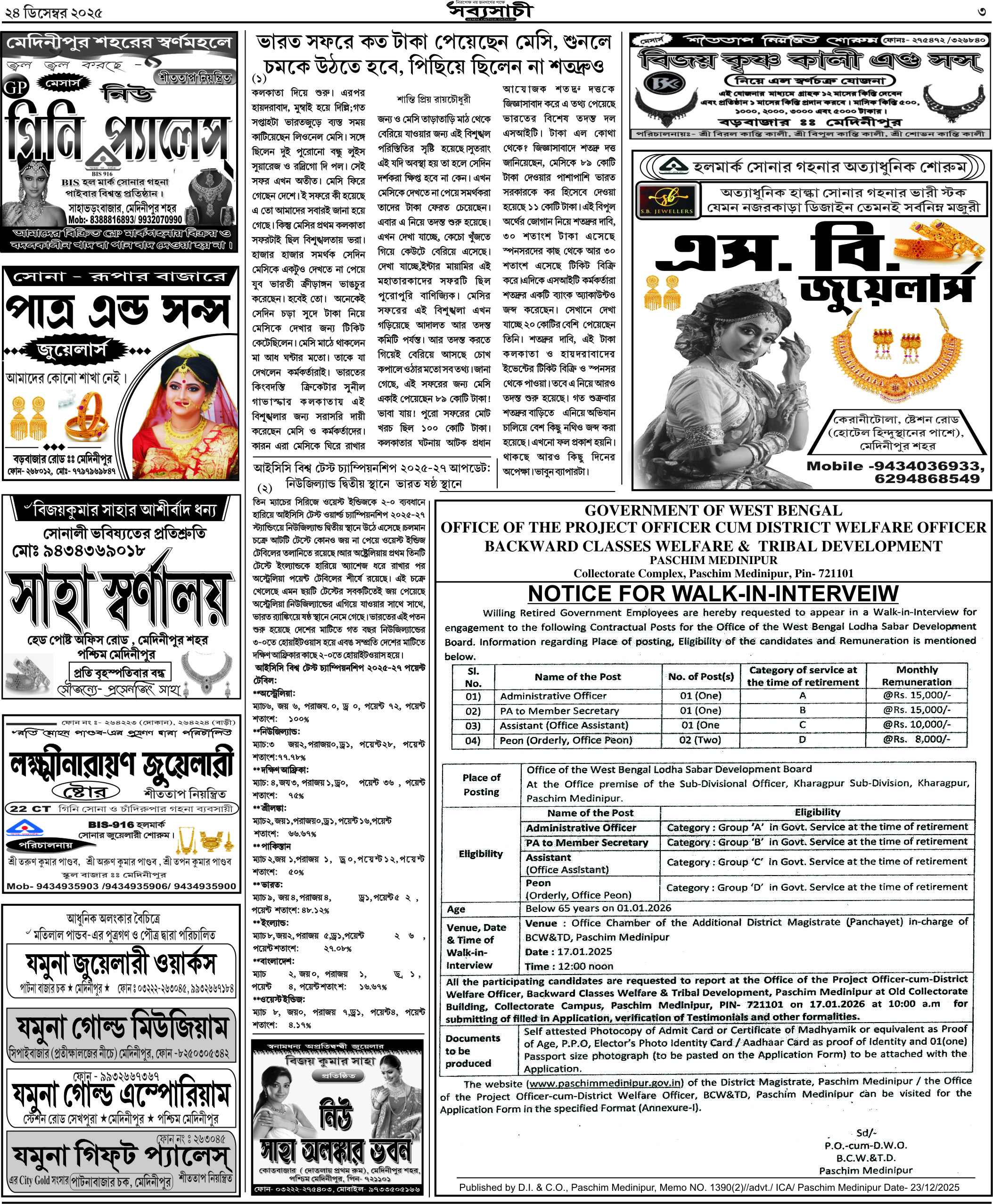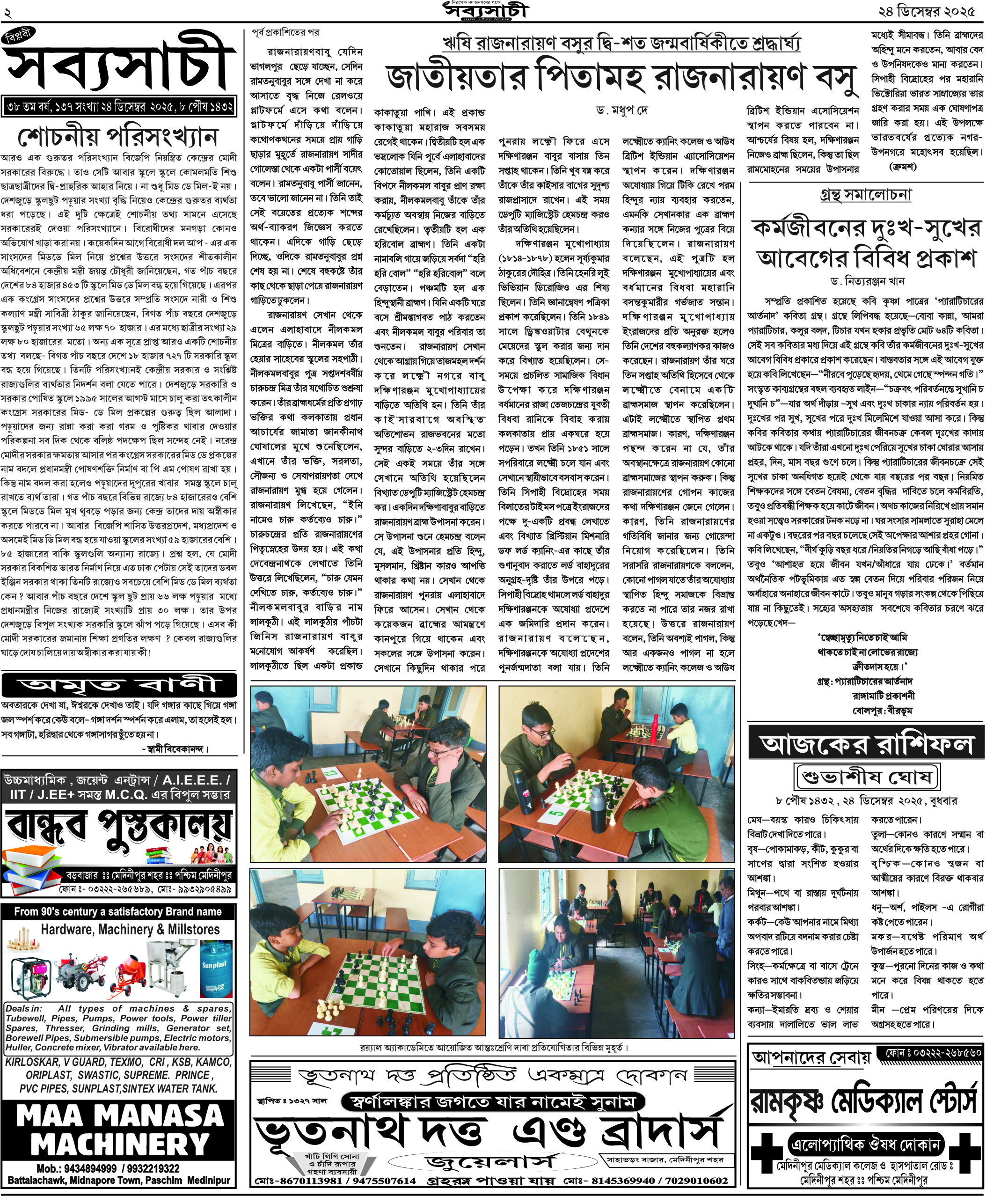 আজকের পত্রিকা – ২৪ ডিসেম্বর ২০২৫, বাঃ – ৮ পৌষ ১৪৩২