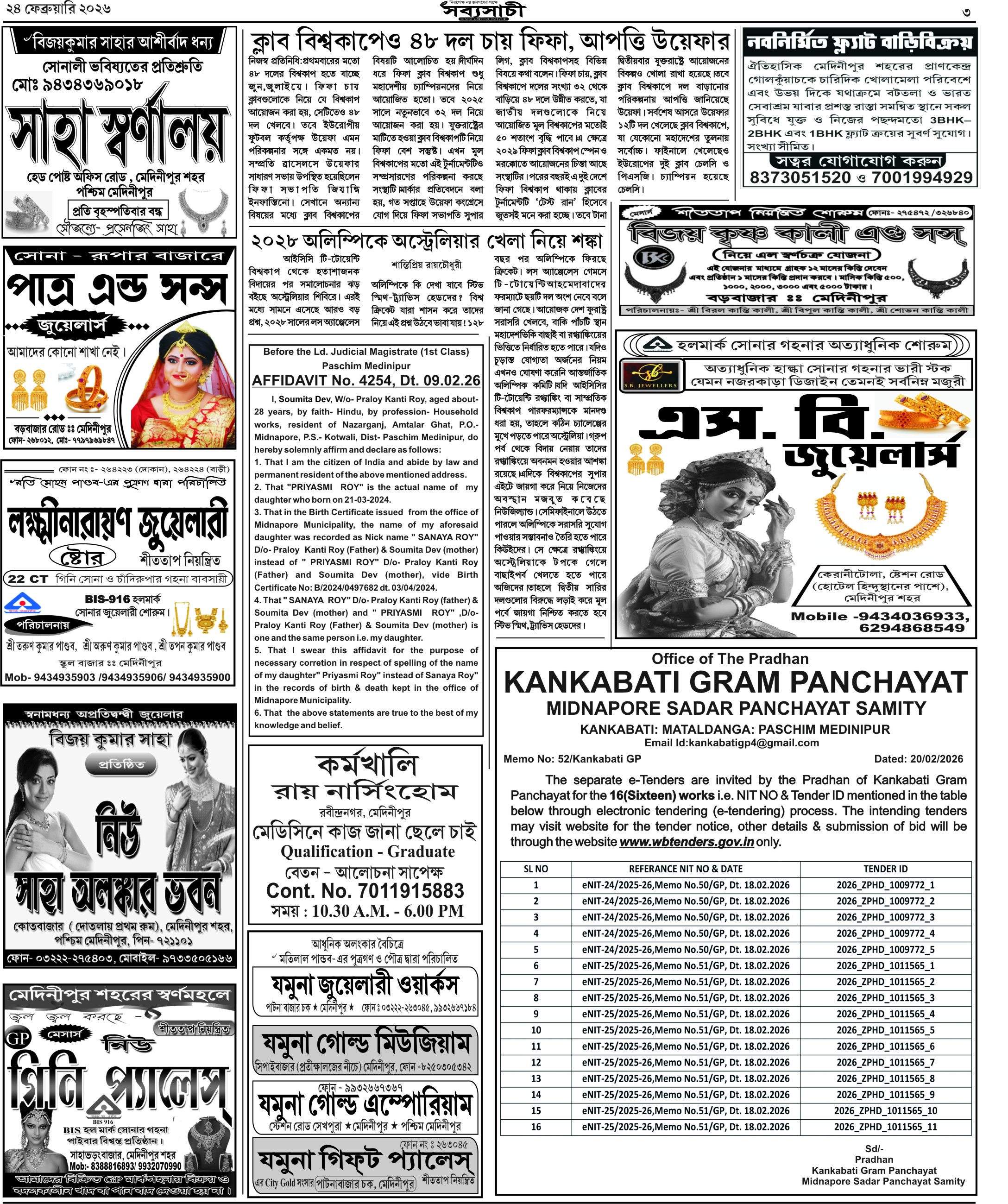 আজকের পত্রিকা – ২৪ফেব্রুয়ারি ২০২৬, বাঃ – ১১ফাল্গুন ১৪৩২