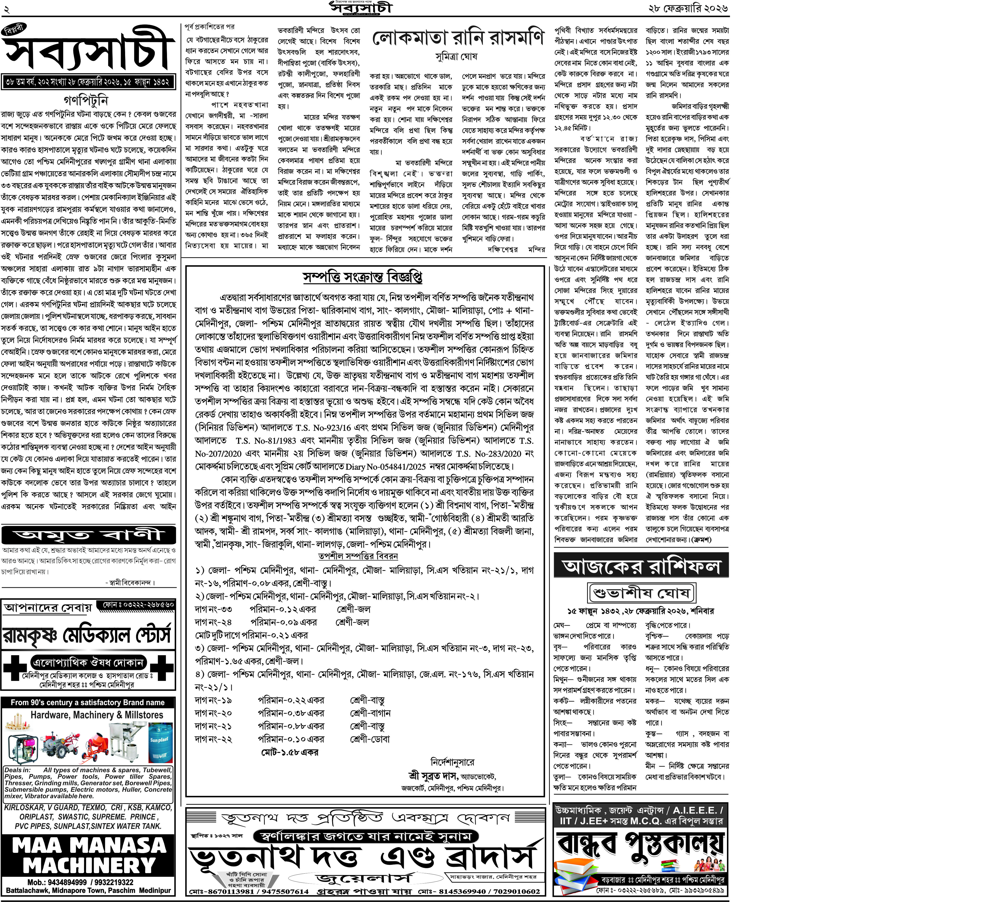 Biplabi Sabyasachi Largest Bengali News paper