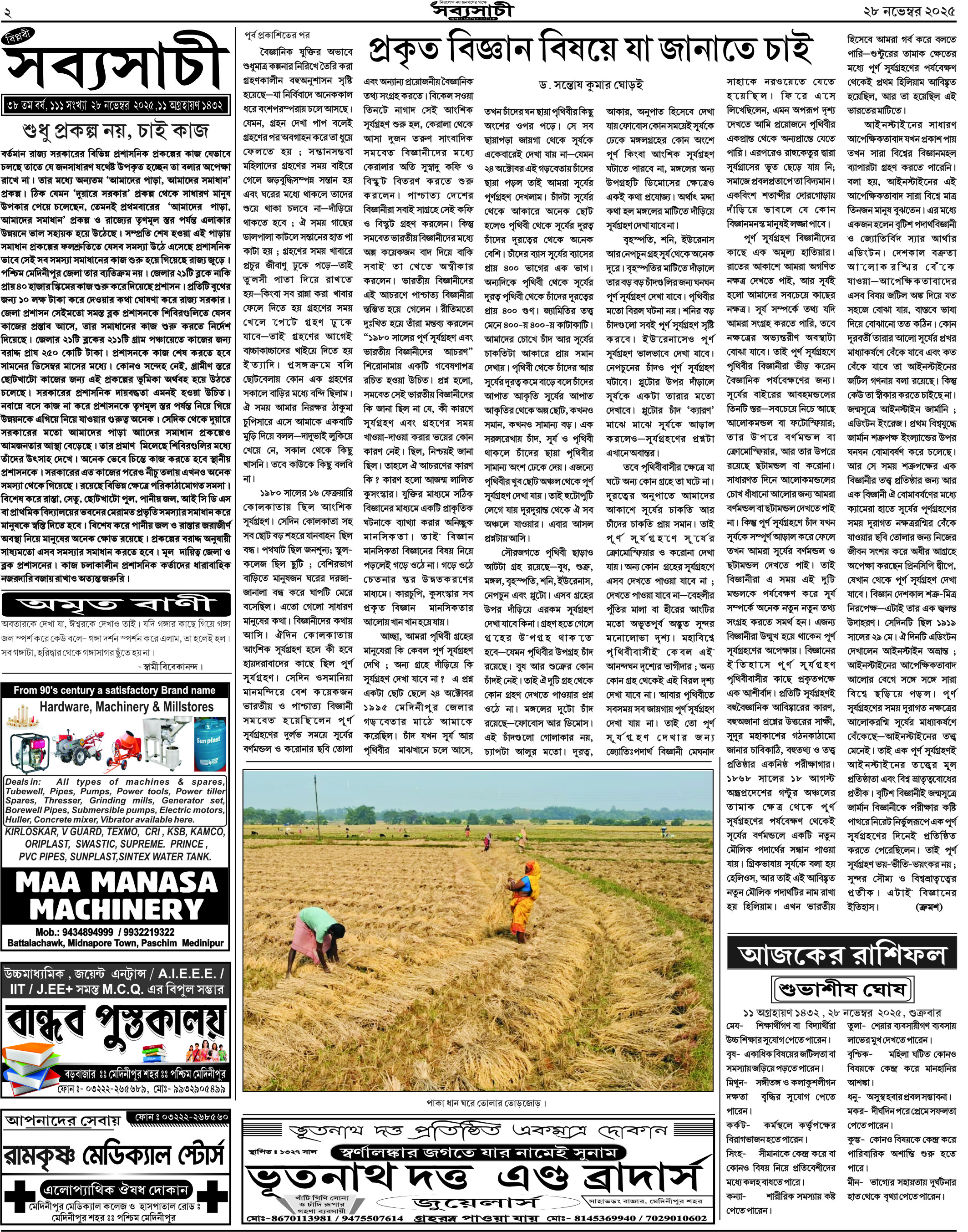 আজকের পত্রিকা -২৪ নভেম্বর ২০২৫, বাঃ – ১১ অগ্রহায়ণ ১৪৩২