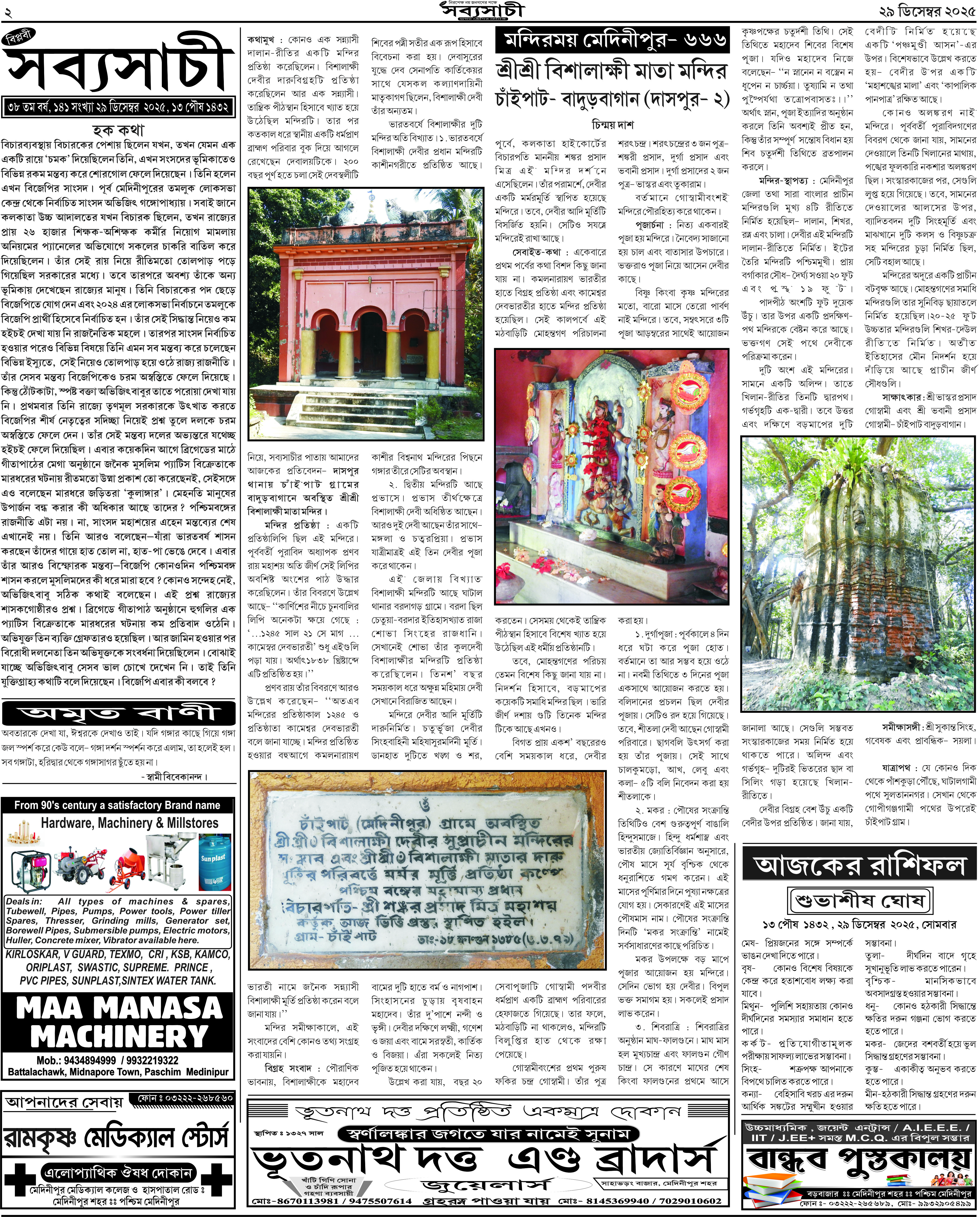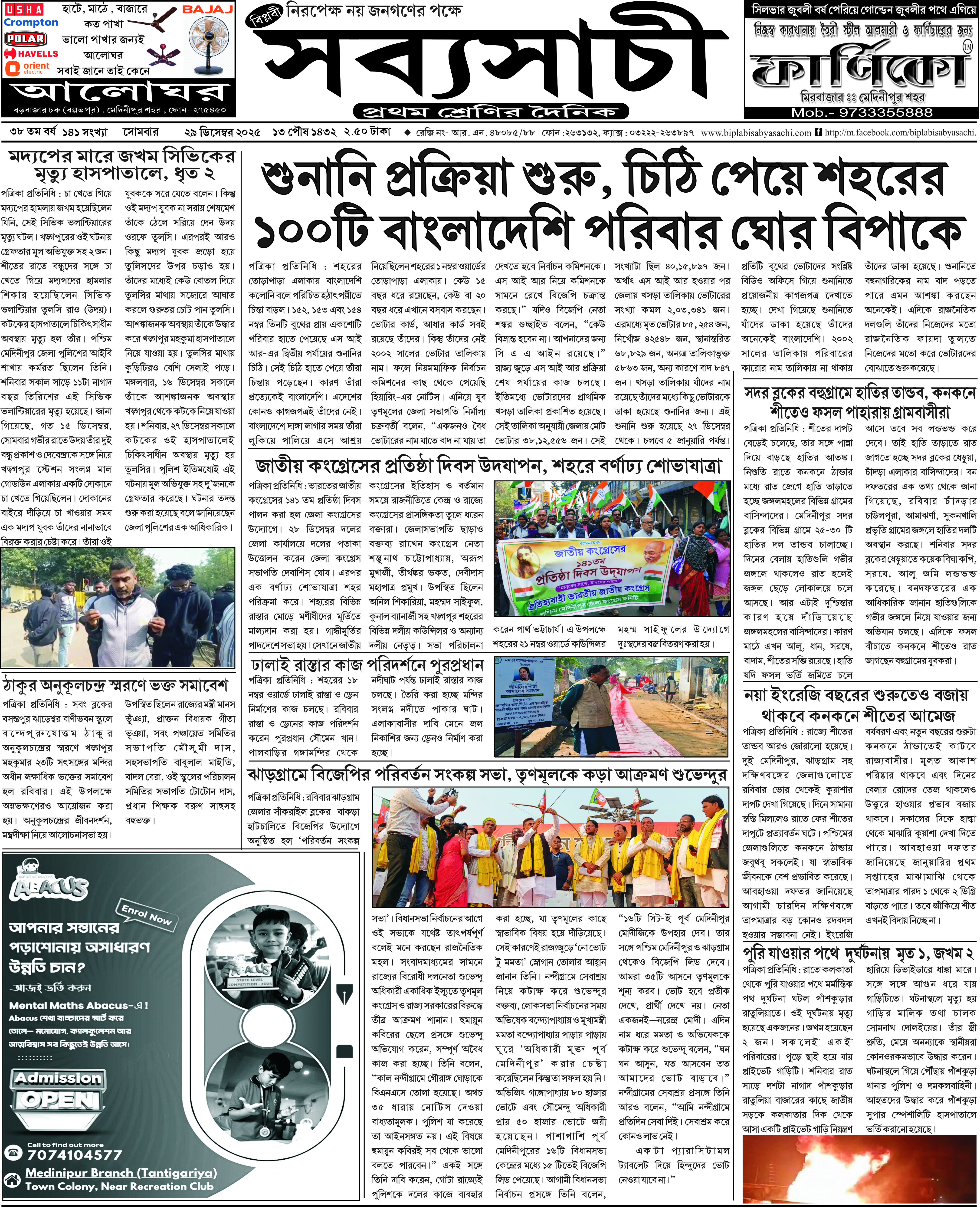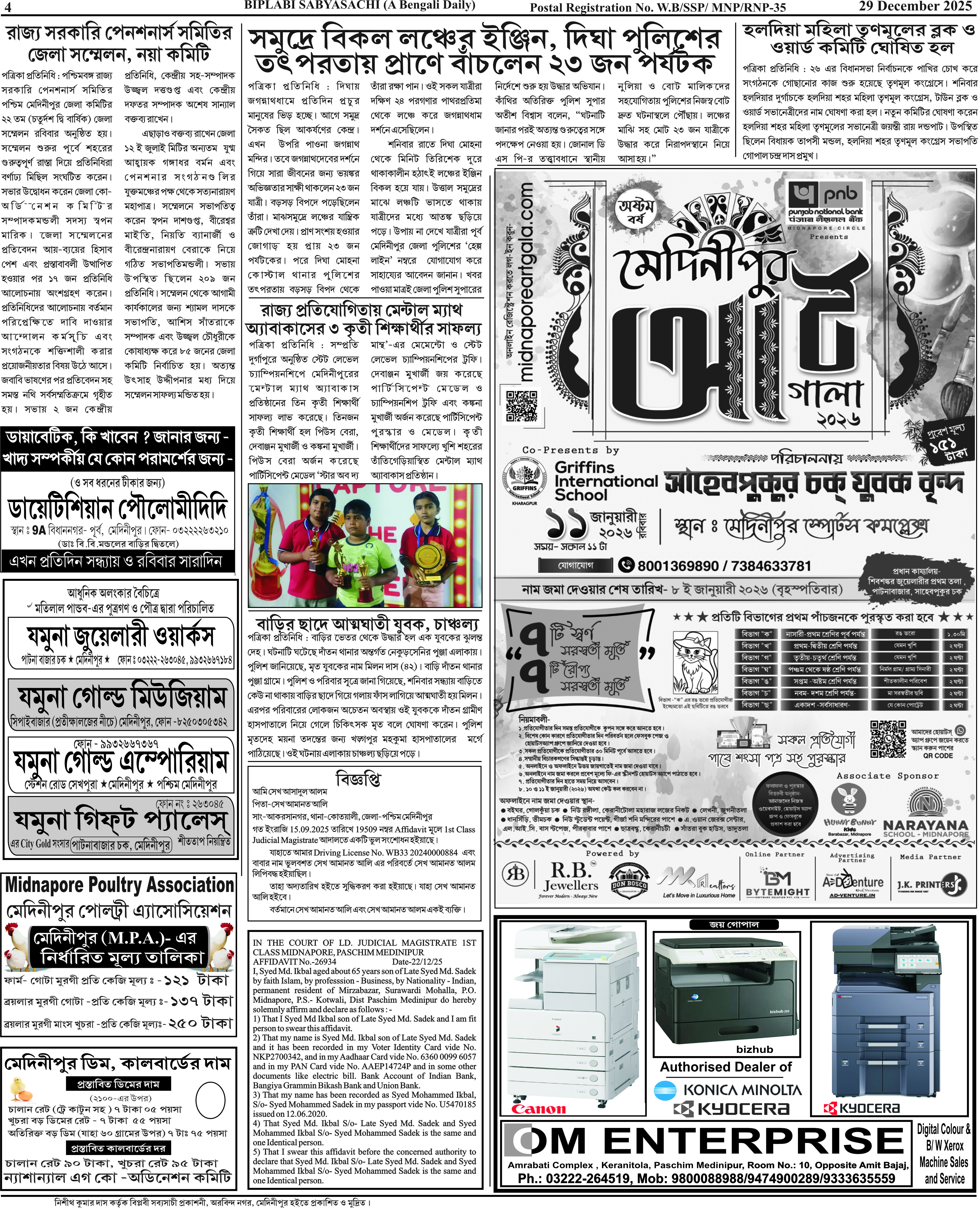 আজকের পত্রিকা – ২৯ ডিসেম্বর ২০২৫, বাঃ – ১৩পৌষ ১৪৩২