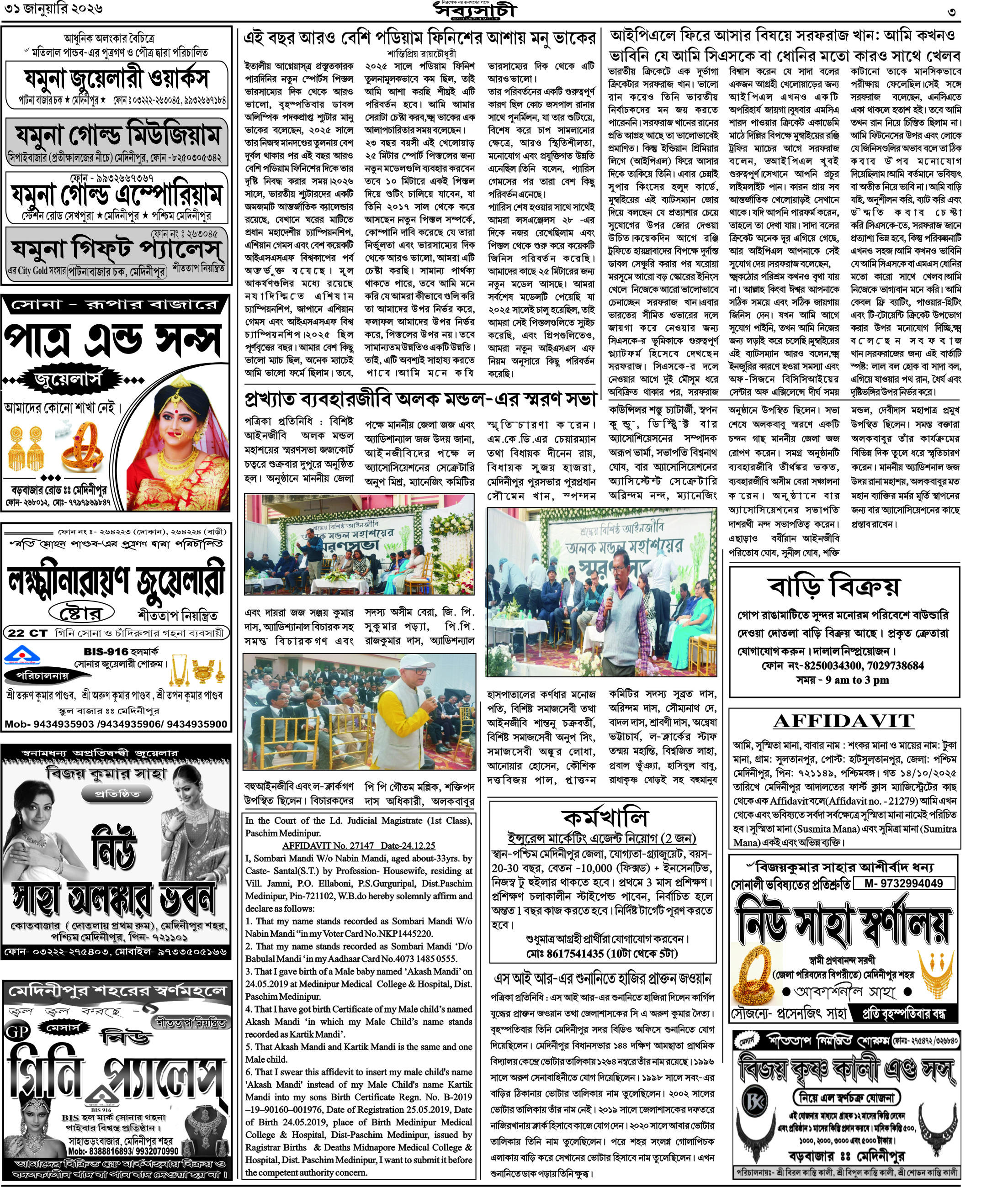 আজকের পত্রিকা – ৩১জানুয়ারি২০২৬, বাঃ – ১৭মাঘ ১৪৩২