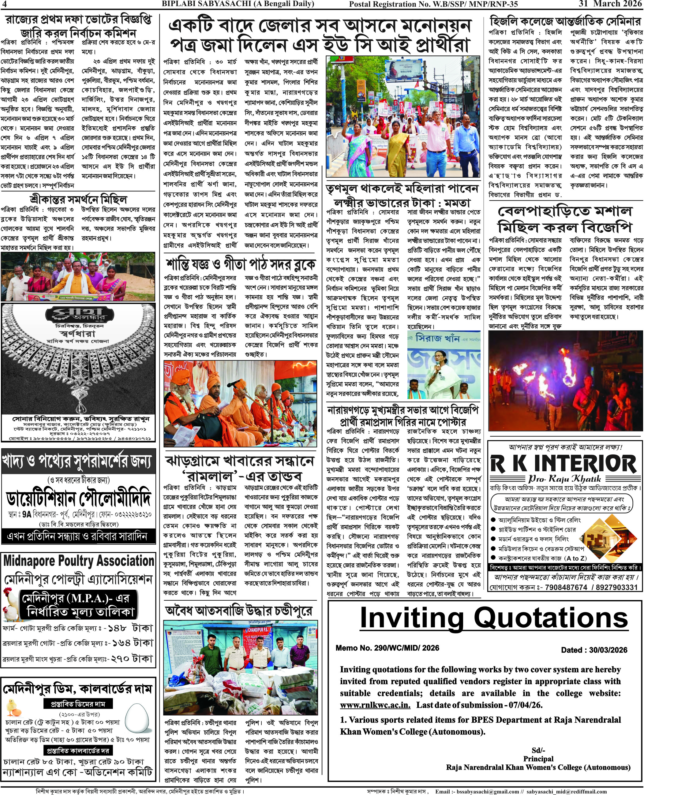 আজকের পত্রিকা – ৩১ মার্চ ২০২৬, বাঃ – ১৬ চৈত্র ১৪৩২