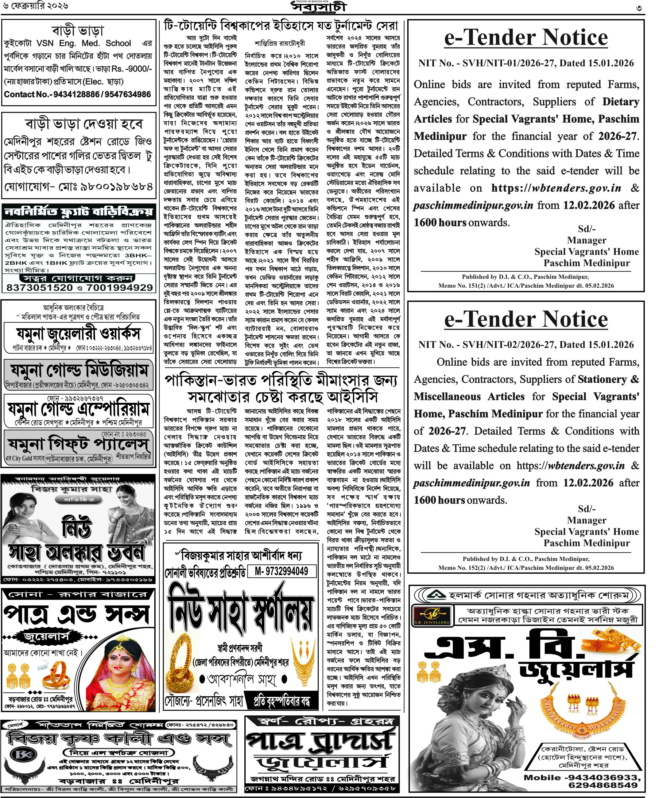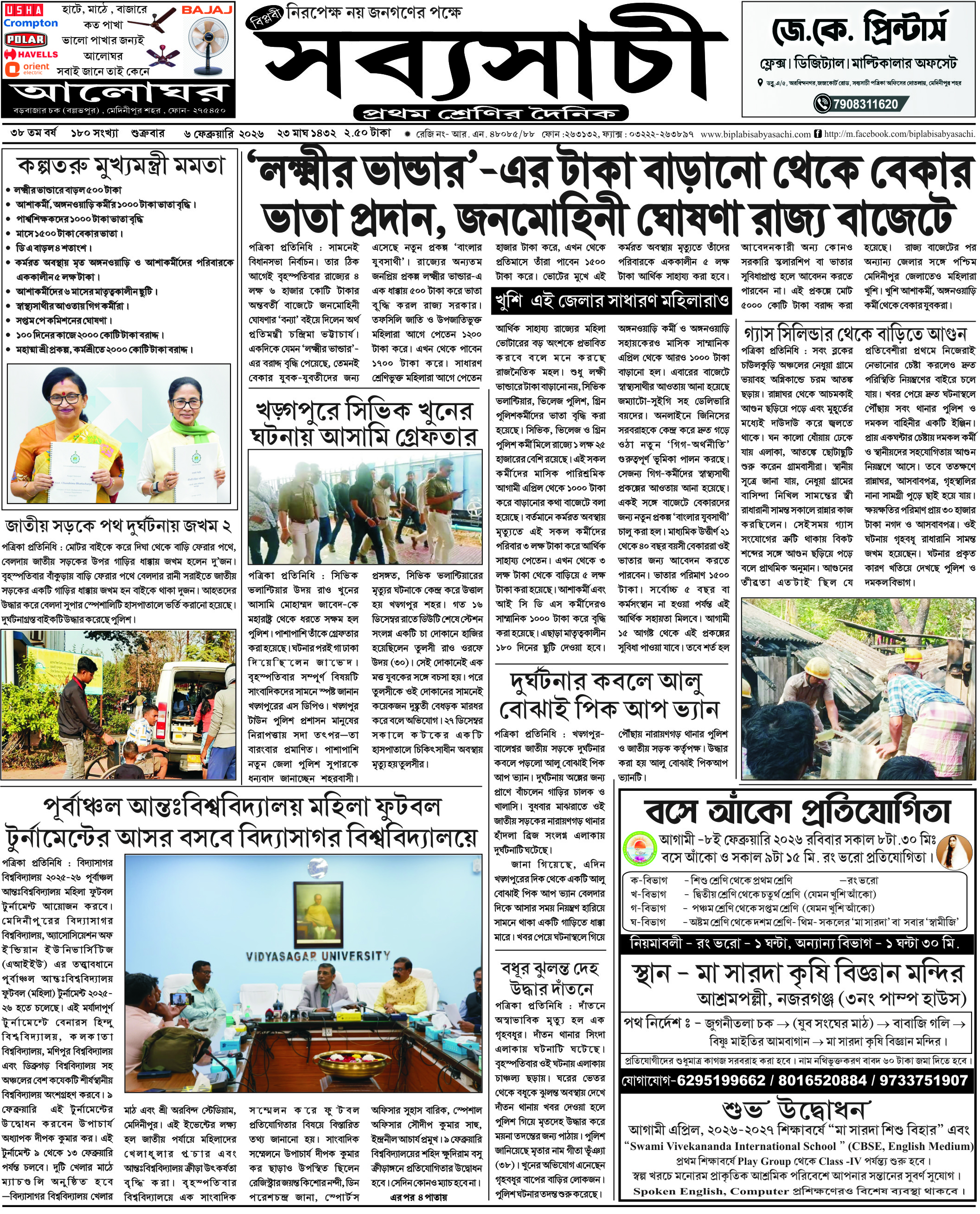আজকের পত্রিকা – ৬ ফেব্রুয়ারি ২০২৬, বাঃ – ২৩মাঘ ১৪৩২